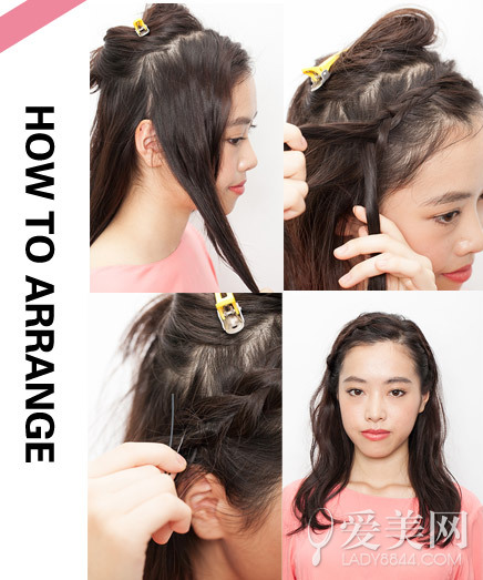 再来看看完整的步骤,将辫子编好后就取出头顶的头发即可。