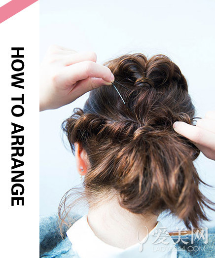 step3:再将发辫用发夹固定在脑后。