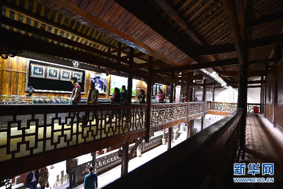 11月2日,人们行走在湖北恩施“九进堂”土司庄园吊脚楼上。湖北省恩施土家族苗族自治州土司城里的“九进堂”土司庄园,是土家族干栏式吊脚楼仿古建筑群落。将传统的土家吊脚楼、摆手堂、官言堂、书院及月台、戏楼等融为一体的“九进堂”,总高99.9米,宽29.9米,呈纵向层台递进式布局,全部建筑构件中,有303个柱础(恩施称磉墩),330道门,90个窗户,全由榫铆相接的木结构组成。总建筑面积4300平方米。是土家族地区土司文化标志性工程。新华社发(宋文摄)