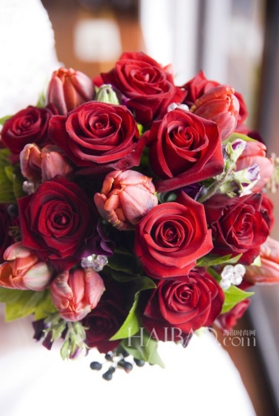 热情四溢的红色玫瑰新娘捧花