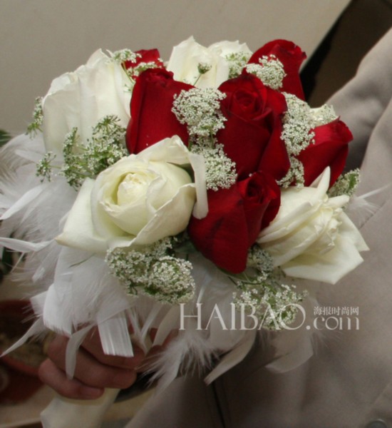 红色玫瑰新娘捧花