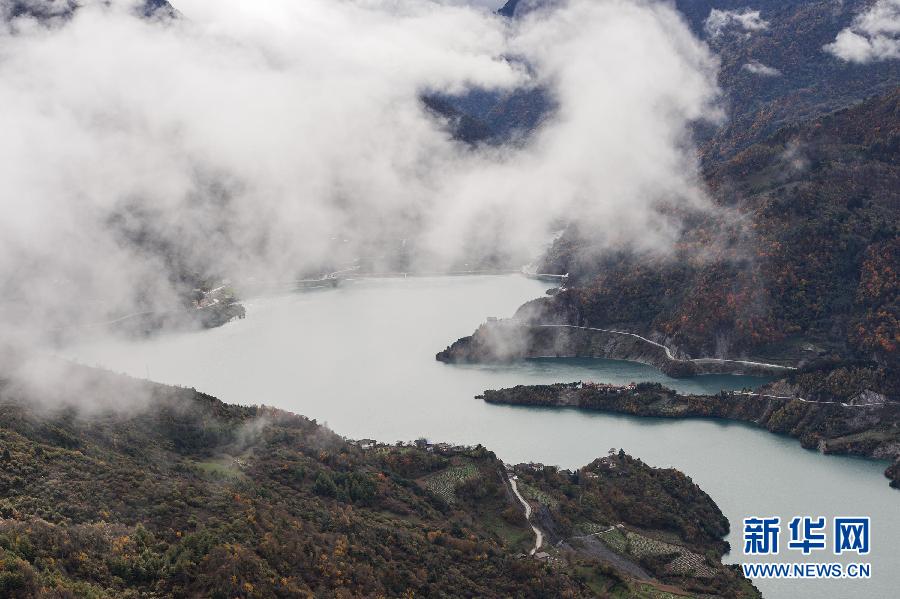 在达瓦更扎上俯瞰硗碛湖(11月1日摄)。四川省宝兴县硗碛藏族乡嘎日村境内的达瓦更扎(“达瓦更扎”为嘉绒藏语,意为“美丽的神山”),海拔约3900米,面积近200平方公里,属于邛崃山脉,地势北高南低,在四川省雅安市、甘孜州以及阿坝州的交界处。今年10月,宝兴县嘎日村为帮助当地藏民发展牧业修建的一条24公里的“通天路”建成通车。该路尽头地势陡险,视野开阔,既可环顾北面的四姑娘山、南面的帕格拉神山、西面的贡嘎群峰等名山,也可观赏云瀑、草甸、森林、湖泊、峡谷、藏寨等各类景观。新华社记者江宏景摄
