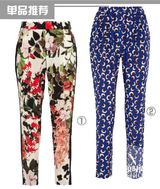 1、ROBERTO CAVALLI Eden花卉印花真丝锥形裤£670