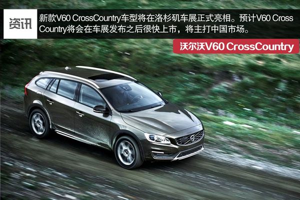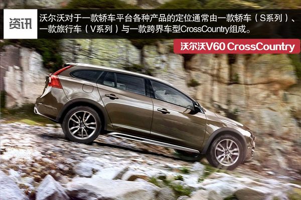 沃尔沃对于一款轿车平台各种产品的定位通常由一款轿车(S系列)、一款旅行车(V系列)与一款跨界车型CrossCountry组成,部分车型还有敞篷轿车(C系列)设定。在推出改款S60、旅行车V60以及各自的Polestar性能版之后,整个S60车系家族便仅缺少一款CrossCountry车型。沃尔沃在昨日官方确认,新款V60CrossCountry车型将在洛杉矶车展正式亮相。预计V60CrossCountry将会在车展发布之后很快上市,中国市场亦是这款车型的目标市场之一。