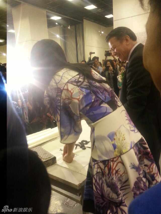 新浪娱乐讯11月6日,汤唯父亲、画家汤余铭的世界文化遗产绘画作品展在台北开幕,爱女汤唯一身优雅裙装亮相撑场。汤唯还为父亲书写的“天顺人和”盖下章印。