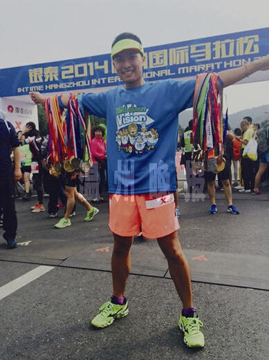 一个偶然的机会,他报名参加了杭州国际马拉松赛,咬牙跑完全程后,他获得了组委会颁发的一枚精致的完赛奖牌,奖牌上西湖三潭印月的图案非常漂亮,从此开始了他热爱的“跑马”生涯——三年跑了100场马拉松,在全球40多个国家以及祖国大江南北留下足迹——不求成绩,只求完赛,收集各种完赛奖牌。