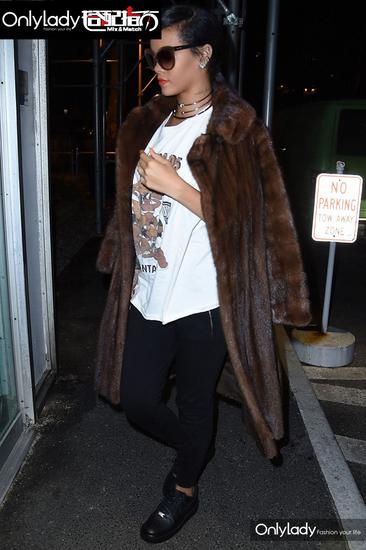 当一件大衣被披着穿的时候,毫无疑问Rihanna绝对是在凹造型的进行时。里面的轻薄装与外面的皮草大衣相互混搭,让整体造型瞬间时尚感倍增。