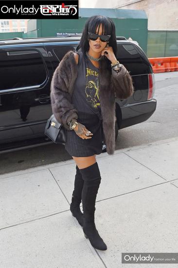 看吧,就说了大衣已经很厚实了Rihanna通常都会在里面混搭夏装,这种反季节的混搭穿法绝对是时尚要领之一,面面俱到的配饰更能使整体的造型完美。