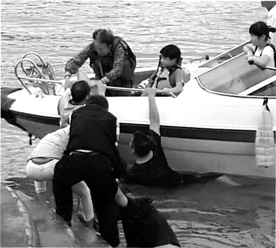 当时,有个汽艇正要靠岸,但汽艇上有个准备上岸的游客一下掉进水里去了,他的同伴们大叫起来,而小陈看到了这个情况,马上跳到海里。