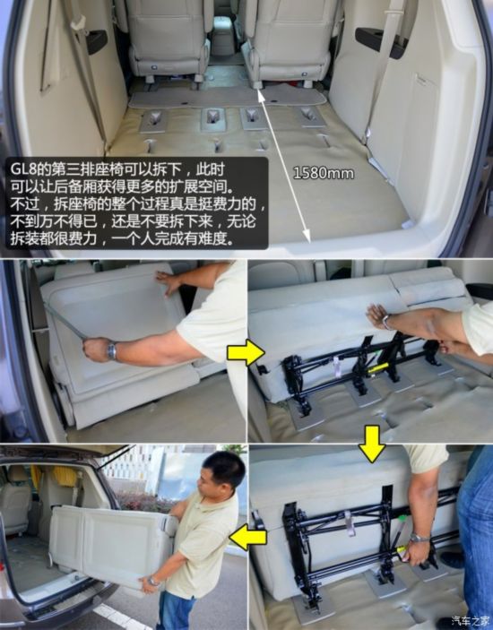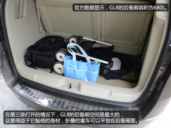 在第三排座椅打开的情况下,GL8的后备厢空间表现最出色,童车折叠后可以平放在后备厢里。奥德赛和夏朗在第三排座椅打开的情况下,后备厢空间表现相差不大,刚好能放下童车和背包,不过夏朗2/3/2的座椅布局让它可以在乘坐四名成年人和一个儿童的时候,不需要打开第三排座椅的,当其它两看车在面对这种情况时,所能提供的后备厢空间就比较有限了,尤其是GL8,第三排座椅的靠背只能整体放倒,后备厢空间的扩展范围太小了。说到扩展方面的表现,依然还是夏朗略胜一筹,不仅第二排座椅放倒后平整度非常好,而且副驾驶座椅也可以向前翻折放平,这可是其它两款对手做不到的,所以在空间扩展性上夏朗要完胜对手。