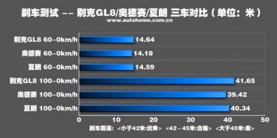 刹车成绩都表现的不错,三款车的刹车距离均小于42米,属于我们推荐的优秀值。它们的刹车姿态也都保持得不错,比较平稳,并没有出现夸张的前倾,对于一款偏重于舒适性表现的MPV来说,这样的成绩和姿态完全可以让人满意了。