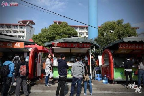 上海松江大学城有很多人在做餐饮生意,赖章平的“八戒烤蹄”是人流量最大的,也是名气最响的。