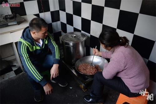 在“八戒烤蹄”烧烤摊一公里之外的出租屋内,赖章平在和正在炒制花生的妈妈商量这批进购的花生的质量,炒熟的花生将会磨成花生粉,是烤猪蹄最棒的作料之一。