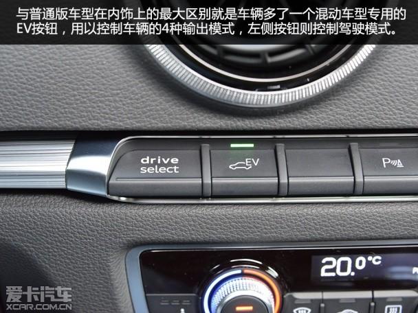 内饰与普通版车型区别最大的就是这个仪表盘了,左侧的转速表被取消,转而显示系统总功率的功率表和一块电量表。中间的液晶屏也针对混动车辆的工况提供众多信息。中控台上的液晶屏可通过按钮升降。除了控制车内众多功能外,还可以监控车辆的运行工况,以此帮助驾驶者以最为经济的方式驾驶。而与普通版车型唯一的不同则是在驾驶模式按钮边多了EV控制键用以调节车辆输出。