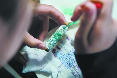 垡头工美技术中心的制作车间里,50来岁的孟祥明大姐负责前端的掐丝工序。戴着厚厚的眼镜,孟大姐不时拿刻度尺比划下案板上头发丝粗细的铜丝,再用镊子把铜丝凹成设计纸上的图案。“干了30多年,这么细的活接的还真不多。”她说。