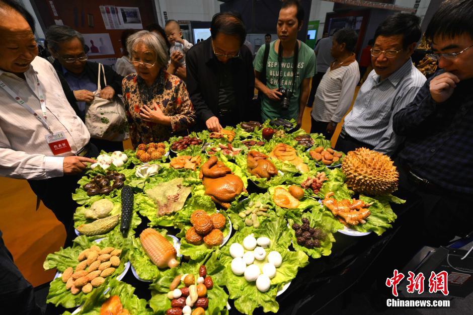 11月23日,在厦门举行的一展会上,一桌由酷似食物菜肴的奇石组成的“满汉全席”让许多前来观赏的市民们真假难辨。中新社发张斌摄