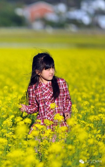 油菜花从中一抹亮丽的小身影。