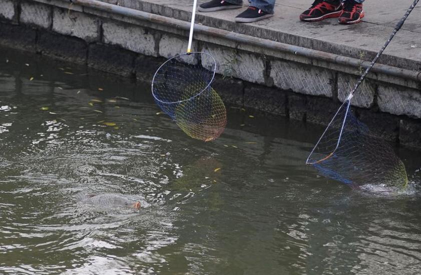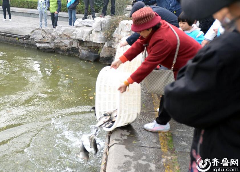 近日,有网友周末在大明湖游玩时,遇到这样一幕:一边有爱心市民在大明河畔放生,另一边却有人带着网兜、渔具现场捕鱼,令人看后倍感心寒。据了解,景区工作人员现场制止捕捞行为,捕捞者却与工作人员玩起“躲猫猫”,屡禁不止。有市民认为,“放生代表一种仁爱,放生的鱼怎么能抓呢?”也有市民表示,“大明湖是泉城济南的代表,在湖里公然捕鱼,有损济南的良好形象!”不少市民和网友纷纷对捕鱼者的行为表示谴责。图片来源:齐鲁网
