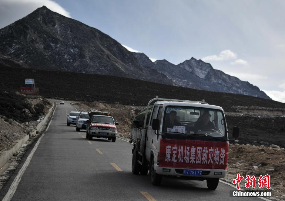 11月24日,康定机场向震灾区捐赠的第二批救灾物资运往灾区。四川康定6.3级地震发生后,中国国家民政部、四川省、甘孜州紧急向康定震灾区调拨救灾物资,一些企业也纷纷伸出援手,大批棉被、棉衣和藏毯、棉帐篷、矿泉水、方便食品等救灾物资先后运抵灾区,并分发到受灾民众手中。中新社发刘忠俊摄