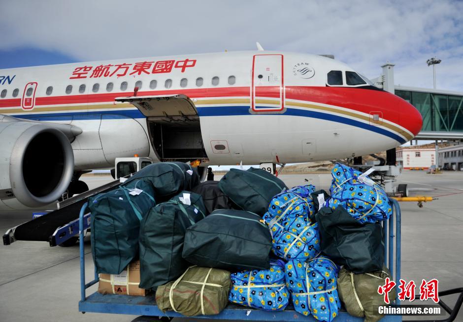 11月24日,由康定机场组织的第二批救灾物资和300爱心布偶抵达康定机场。当日,成都小学生捐赠的300爱心布偶以及康定机场捐赠的救灾物资运抵康定机场,机场组织车辆迅速送到位于震中的祖庆学校,志愿者们及时分发给了孩子们,收到爱心布偶孩子们的脸上露出灿烂笑容。中新社发刘忠俊摄