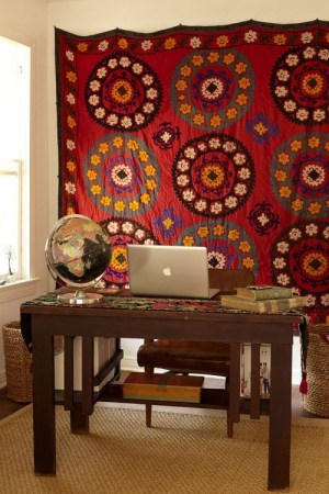 另外,Paige对挂毯的使用也令人颇感兴奋,灰色可以很好的烘托色彩,而不同花纹色彩的挂毯,在不同房的间中,都可以很好的烘托营造空间气氛。