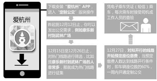 怎样定制?目前只有下载安装“爱杭州”APP,进入“定制公交”版块操作(具体流程可见图)。