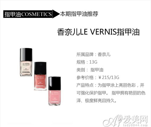 编辑推荐理由:为指甲涂上亮丽色彩,并可强化保护指甲。指甲拥有艳丽的色泽、极度鲜亮且持久。内含生化陶,可强化且保护指甲。并有Ceramides成分,具有润泽指甲的效果。