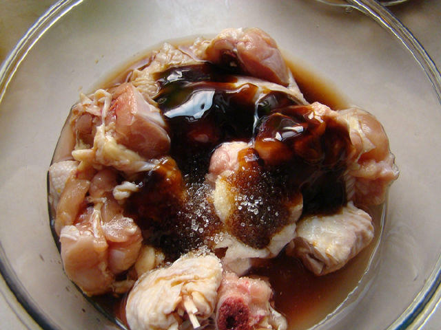 2、加入料酒、蚝油、酱油、白糖、盐。