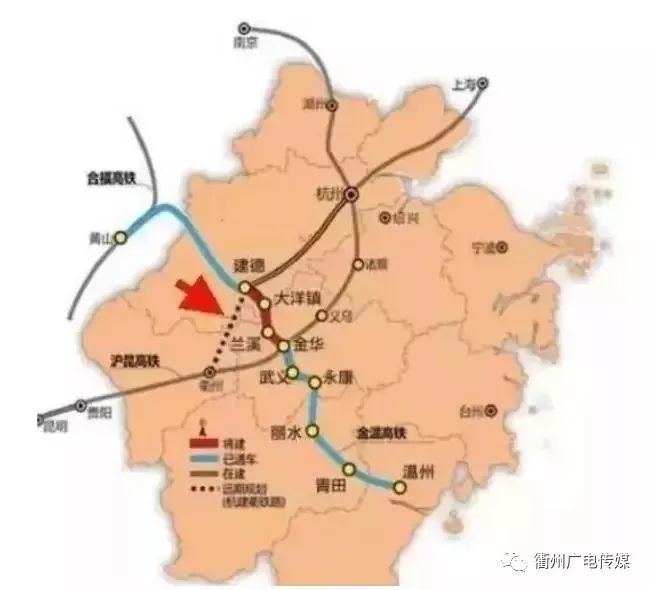 杭衢铁路自杭州西-桐庐-建德东-衢州西至江山,总长约232公里。其中建衢段正线全长约124公里,设计时速350公里,为杭衢高铁先期实施项目,新建建德南站、龙游北站、衢州西站,预留衢江莲花站。项目计划2022年建成,建成后,杭州出发40分钟到衢州!