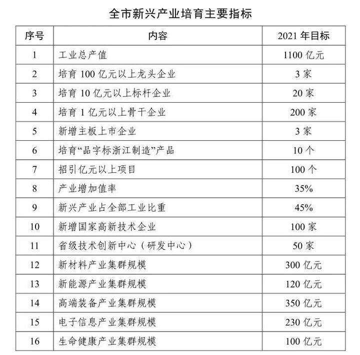 衢州市新兴产业培育三年行动计划